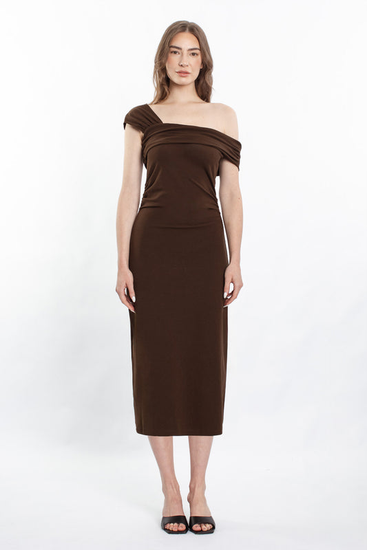 Lucia Asymmetrical Wrap Midi Dress - Mocha